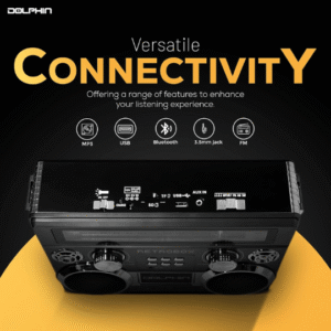 The Dolphin SP-2100RBT is a high-powered Bluetooth party speaker designed to get the party started anywhere. With 100 watts of power, it delivers loud, clear sound and deep bass—making it perfect for music, events, or karaoke.